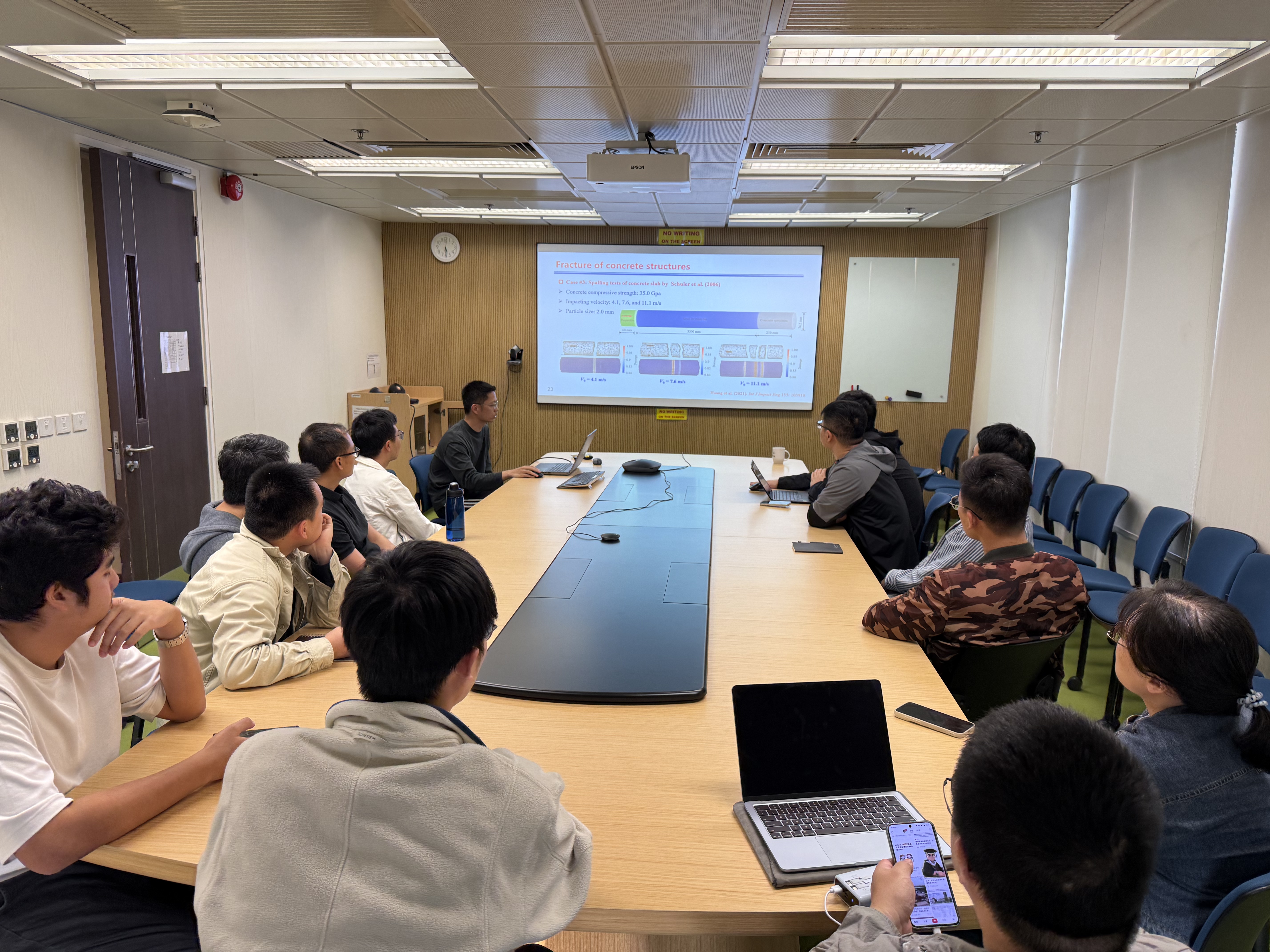 Dr. Xie-ping HUANG, who received his PhD from Zhejiang University, has recently joined our group as a postdoctoral fellow. He gave us a talk on "PD-SPH coupling method for solving fluid-structure interactions and its applications to Engineering." Thanks a lot for sharing his excellent research work.